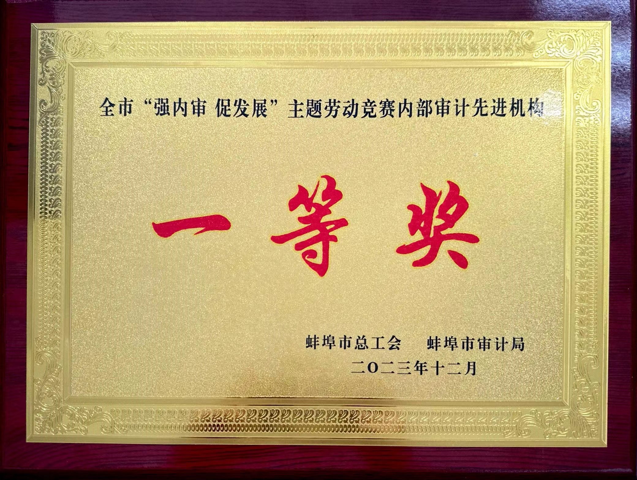 2023年12月26日,蚌投集團(tuán)在市審計局、市總工會聯(lián)合舉辦的全市“強(qiáng)內(nèi)審 促發(fā)展”主題勞動競賽中榮獲全市“強(qiáng)內(nèi)審...
