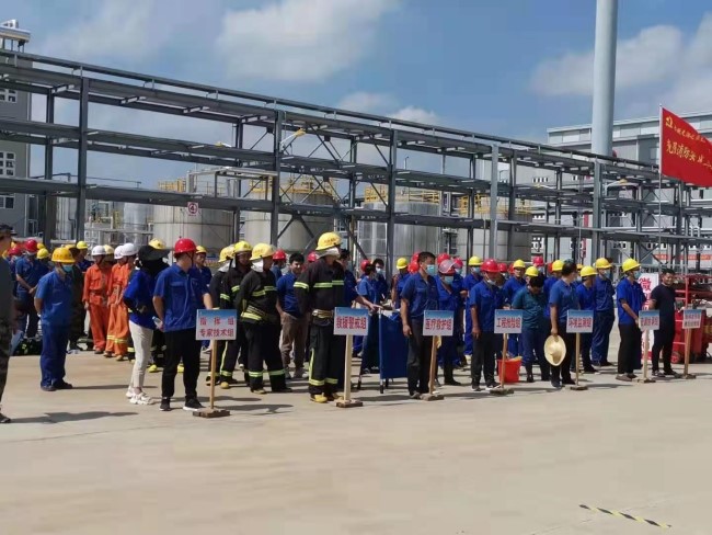 為檢驗(yàn)《天潤(rùn)化工生產(chǎn)安全事故綜合應(yīng)急預(yù)案》在新廠區(qū)的可行性,7月22日上午,天潤(rùn)公司在新廠區(qū)重大危險(xiǎn)源1#丙烯腈罐區(qū)進(jìn)行了綜合應(yīng)急演練。公司黨委書記、總經(jīng)理劉彭城任現(xiàn)場(chǎng)演練總指揮,黨委經(jīng)營(yíng)班子成員、中層管理人員、安全管理人員及相關(guān)部門應(yīng)急救援組成員等70余人參與演練。